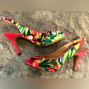 Mootsies Tootsie-Alyson Tropical Floral Peep Toe Sling Back. Size 10