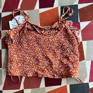 Light Brown Cropped Sleeveless Top with Ruffles