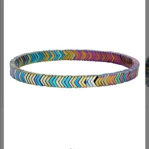 Blue & Red Hematite Chevron Beaded Bracelet