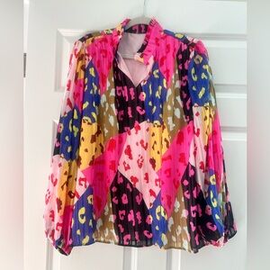 NWT UMGEE Blue Floral Blouse with Pink Accents