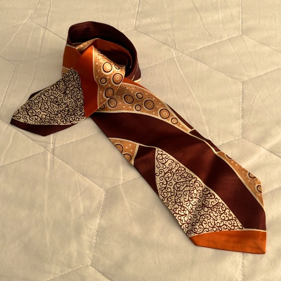 This tie is beautiful!!! Thank you seller. I'm from Kansas and this tie was made in Dodge City, Kansas(5 hours away)in the 1940s. I'm very excited to own a piece of history that I can wear any time. The condition is pristine. I appreciate you seller🤎🤎💛 Thank you!!!