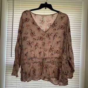 Umgee peach Top with Floral Sleeves