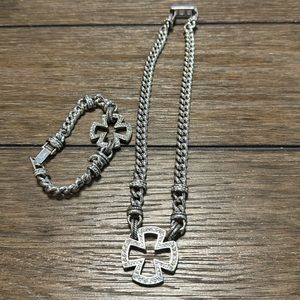 Brighton Maltese Cross Bracelet & Necklace Antiqued Silver Tone Rhinestones Link