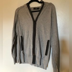 Nicole Miller Artelier Hoodie Cardigan Open Front Mesh White Sweater