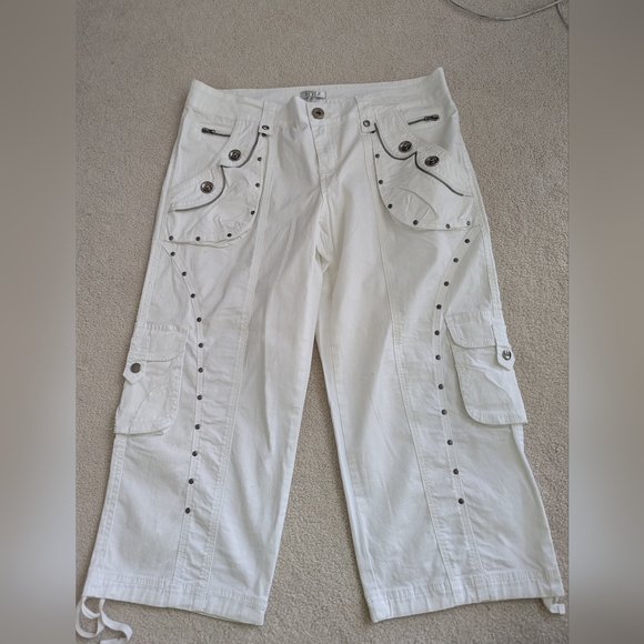 Great looking cargo capris with cute detail. Very good value. Packed and shipped well. Thanks.