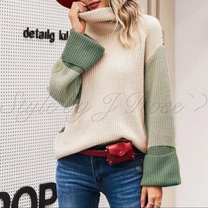 Green and Beige Color Block Sweater