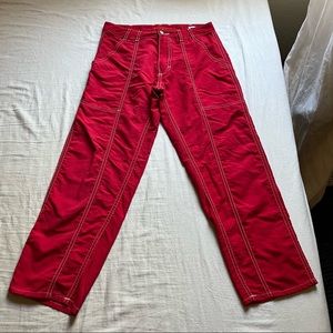 Eckhaus Latta red straight leg cropped contrast stitch pants