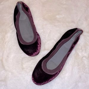 Designer Stuart Weitzman Lastikon Plum Purple Velvet Flats Shoes