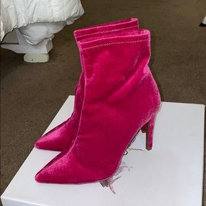 Pink velvet booties