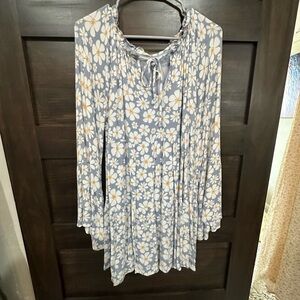 White and Blue Floral Bell Sleeve Knee-Length Sundress