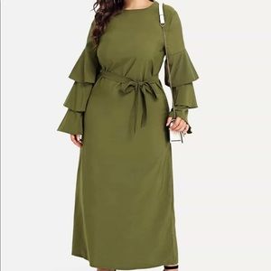 4XL Modest ruffle sleeve dress olive green belted