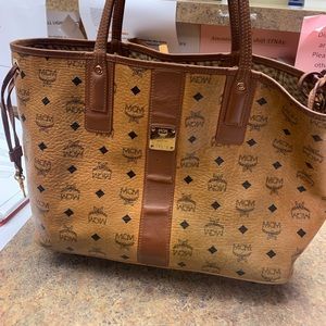 Mcm Liz reversible shopper tote medium cognac + mini pouch