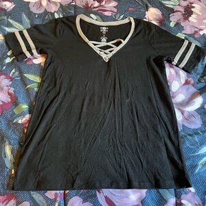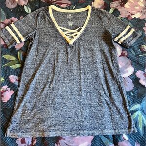 SO sporty tee small grey and black v neck with detail. Hardly worn, like new