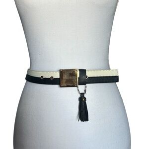 NWT Women’s Belt- Navy & Cream, Gold Buckle and Navy Tassel, Size Small