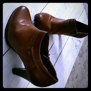 Brown high heel ankle boot.
