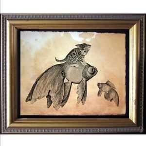 Wildcat Riding Shark Wall Art Print Tea Stained