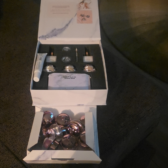 Product as described with extra color included. One of the liquids was dried up. Since it was just the nail polish remover the kit was still 100% usable.