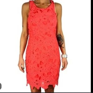 Astr Vibrant Coral Cut Out Lace Mini Dress Size XS
