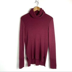 Veronica Beard Women Sweater Size L 100% Cashmere Turtleneck Burgundy Split Side