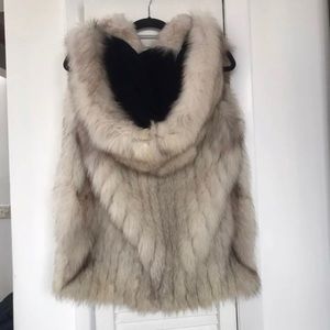 Vtg Saga Silver Fox Oversized Hooded Vest