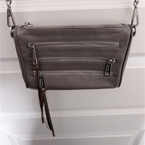 Rebecca Minkoff Three Zip Leather Studded Crossbody Bag Gray Taupe
