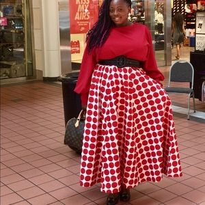 White with Red Poka Dot Maxi Skirt M-3XL