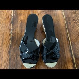 Jimmy Choo Black Patent Leather Cork Platform Slides