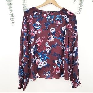 a.n.a Floral Maroon Long Sleeve Blouse Office