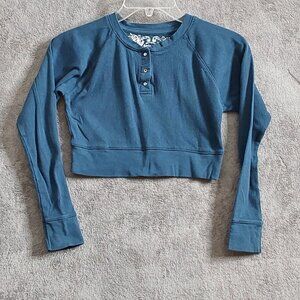 Vintage Ponytails Ribbed Blue Top | Girls Size 10/12 | Y2K Short Sleeve