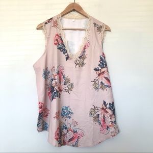 SheIn Beige Floral Lace Trim Tank Top 2X