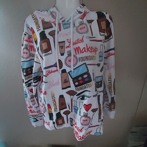 ON FIRE SZ M 100% cotton make up style print pretty hoodie