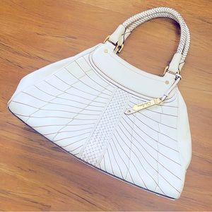 Cole Haan White Ivory Leather Woven Purse Braid Handle