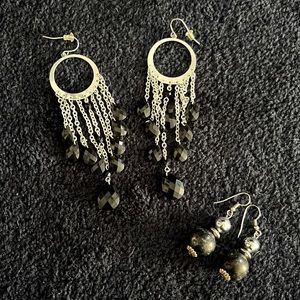 two pairs of costume jewelry earrings - silver and black