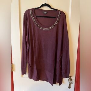 Plum/eggplant chiffon beaded strapless dress.