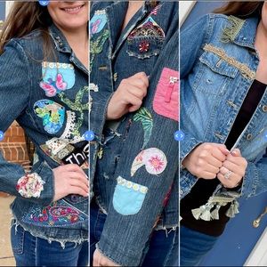 Denim jacket, size Women’s Medium. Pretty gold ribbon, tassels, fringe