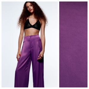 Zara Purple Satin Wide Leg Pants Full Length High-Waisted Trousers Pants Medium