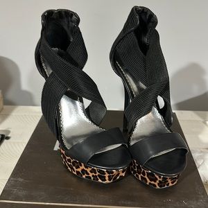 Bébé black with leopard print heels.