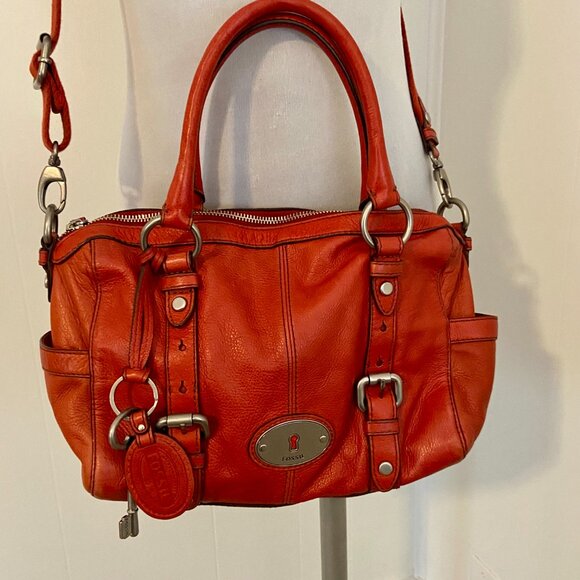 Received the bag as described, she looks better in person. Great Fossil quality, straps & Fossil Key Charm in place. Perfect. Shipped fast, but delayed due to bad weather over the weekend. Thanks!