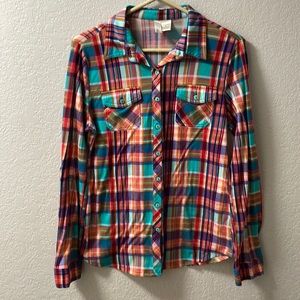 Mustard Seed Striped Button Down Blouse Lightweight Relaxed Shirt