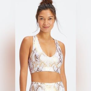NWT Fabletics High Waisted Foil Legging Snake Print White/Gold