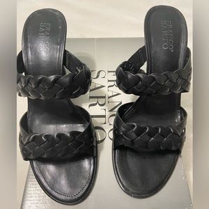 Franco Sarto black patent leather cork wedge 8-1/2m