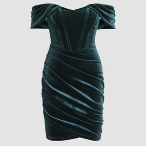 Dark Teal Bardot neckline bodycon dress. NWOT Cider M.
