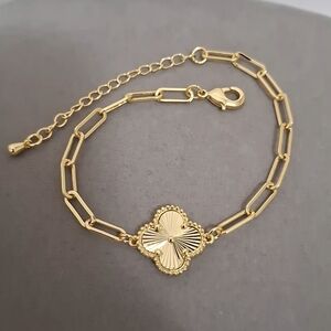 Multi Diamonds Gold filled four leafs five flowers Cuban Link bracelet