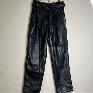And Now This Women's Faux-Leather Black Paper Bag Pants