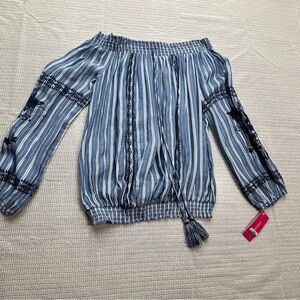 21 Denim Womens XS Chambray Tie Front Crop Button Shirt Blue