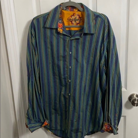 This will become my official wine-tasting shirt. Yes, it is Robert Graham and in great condition. And, yes, when you flip the cuffs the print shows happy people tasting their favorite libations. So you may ask...is that why it will be for wine-tasting? And, I would respond...not exactly. I would say...no, not for that reason...rather if you just look at the wonderful shades of Cabernet, Merlot and Ruby Port you will see the reason..think about it.
