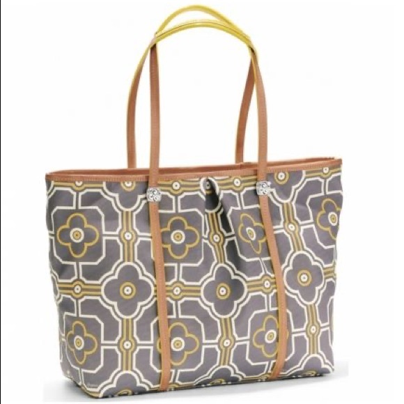 The box arrived quickly and the Brighton tote bag was in excellent condition as described. It was carefully packaged and I am happy with my purchase. I like the yellow and gray print and large size of the bag. Also, I appreciate the great price. Thanks!