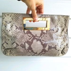 Michael Kors Snakeskin Gold Handle Clutch Purse.
