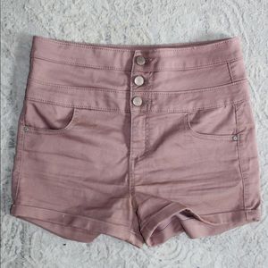 TinselTown Pink High Waisted Shorts Triple Button