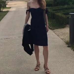 The Reformation dark blue strapless dress in US4